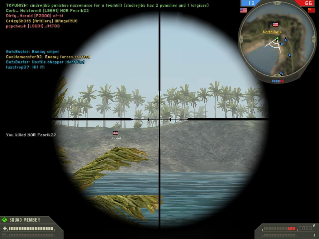 | Ну в атаку снайпером тоже ходить как то хреново, не приспособлен он, для этого другие киты есть В том бою с которого скрин, я снял 32 фрага 15 из них былы снайпера думаю пользы принес немало. Стрелять с близкого растояния тоже особо смысла нет, найдут зарежут или пристрелят. Да и зачем оптика с камуфляжем шкерится это как раз работа снайпера, со 100 м лучше АК или G3 ну и т.д. А в бою у врага не видно кто сквадлидер или коммандер, если и выбирать то только по званию. Намного лучше уничтожать техников при ремонте и т.п., антитанков, башенных пулеметчиков, медиков, спецов ну и супортов желательно при их непосредственной работе ибо уничтожая снабжение, лечение и тяжелое пехотное вооружение, в общем по ситуации никакой даже супер свадлидер уже ничего не сделает. М 95 лучше брать на авиа картах зашкериться где нить над вражеским аэродромом и желательно подальше, все самолеты вертолеты взлетать будут гораздо реже. Лишить противника поддержки с воздуха является решающим фактором на таких картах . СВД или Тип 88 лучше америкосовских не только скорострельностью, но и тем (что более важно ИМХО) что ты не отрываешь взгляд от мишени они лучше на городских картах где нет больших дистанций. И самое главное надо думать над выбором позиции главное правило расположиться там кде тебя никто не ожидает, не лезть на краны крыши про которые все знают, хотя из правил есть и исключения. З.Ы Еще кое что забыл, а это важно! Никогда не ленитесь нажимать на кнопочку "Q" и сообщать команде о всех видимых вами передвижениях вражеских сил. Бывает так что спецы и авиация противника уже постарались и радар со сканером разрушены или командера просто нет, зато ваша команда будет знать кто где бежит,едет,летит.