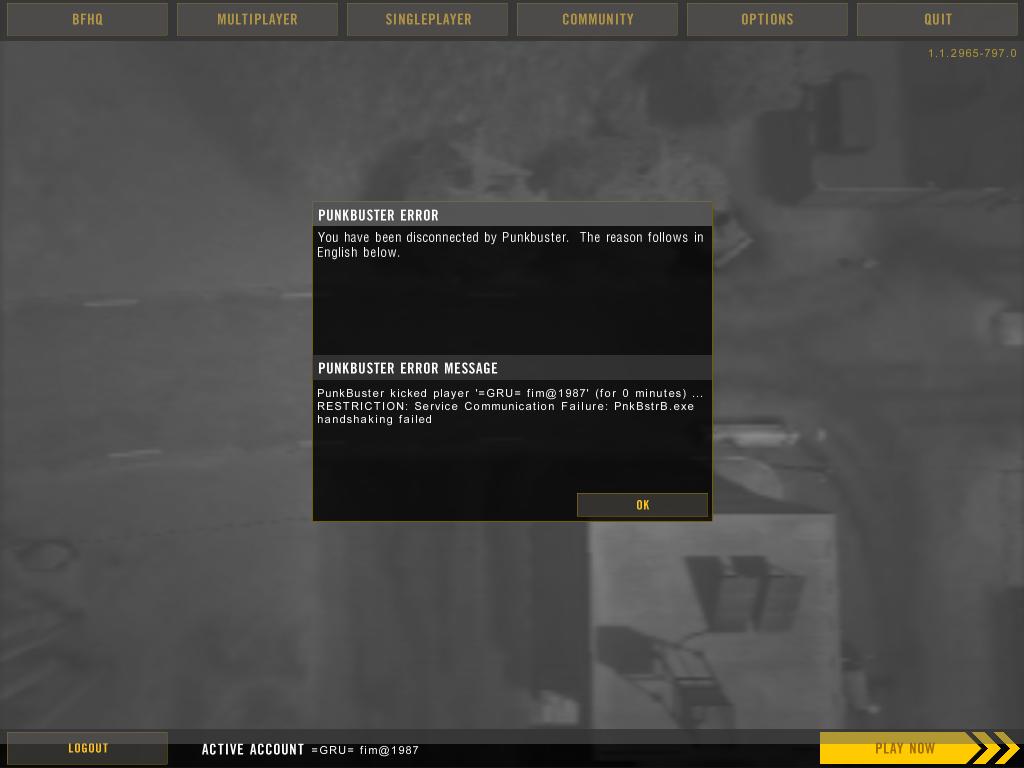 Punkbuster kicked player ... (for 0 minut) ......... Failure: PnkBstrb.exe initializating failed
