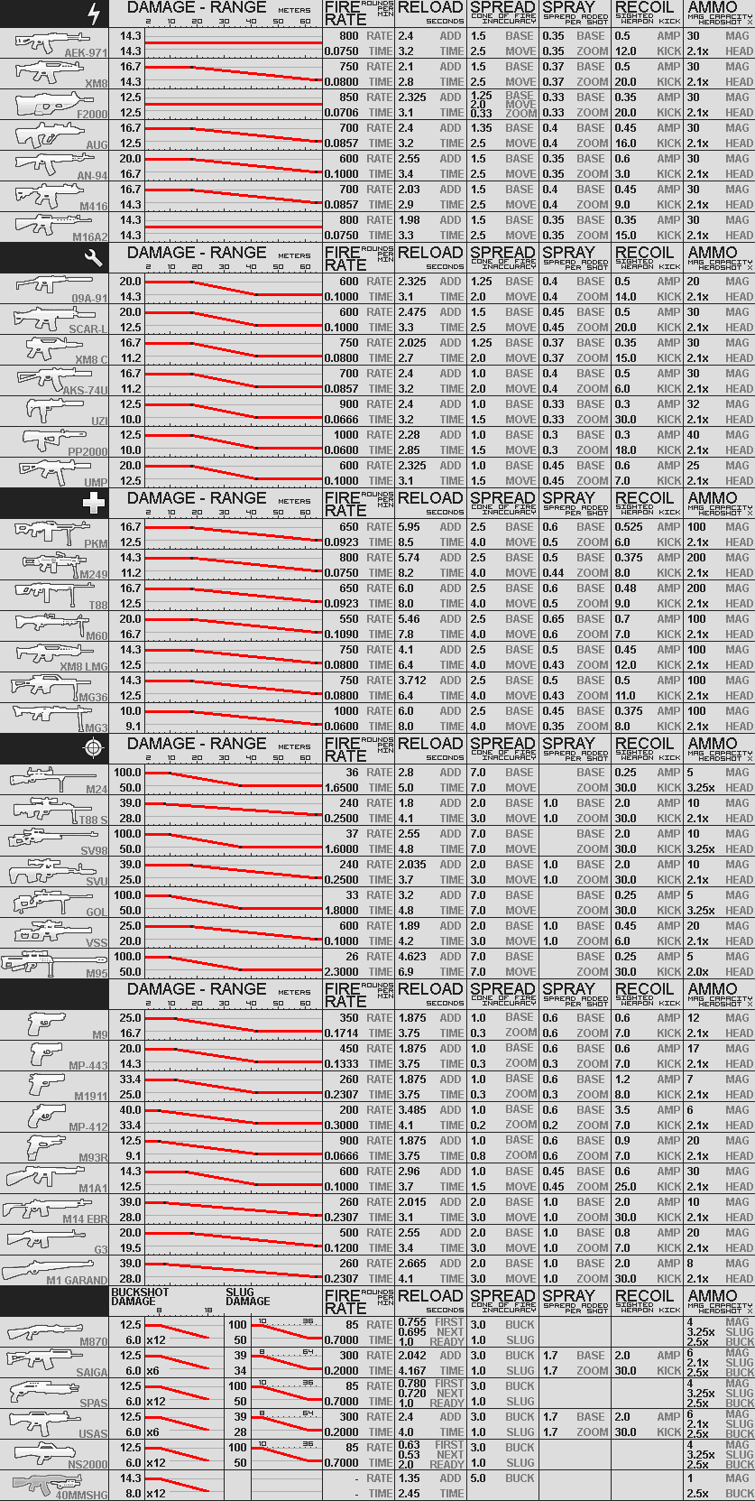 Таблица урона всего стрелкового оружия в Battlefield Bad Company 2. Теперь вам не нужно гадать или предполагать, какое оружие самое мощное и точное, таблица у вас перед глазами.