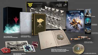 - The Taken King - Collector's Edition ($79.99) — содержит контент Legendary Edition в стилбуке, модифицированную книгу «Остров сокровищ» со вступительным письмом от Cayde-6, личные заметки и иллюстрации Cayde-6, набор оружия раннего доступа, коллекцию реликвий и артефактов из мира Destiny и репродукцию внутриигрового предмета Strange Coin;