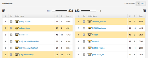 Теперь вы сможете наблюдать за ходом боя на сервере, в реальном времени и посмотреть некоторые детали боя. Для просмотра будет доступно: количество и ники игроков на сервере, k/d каждого игрока, количество тикетов, командные очки. Безусловно, Live Scoreboard будет очень востребованной функцией, теперь появится возможность выбирать сервера не только исходя их режима и количества игроков. Появится возможность отслеживать большое количества параметров. Точная дата введения функции Live Scoreboard пока остается неизвестной. Несколько недель, так отвечают разработчики.