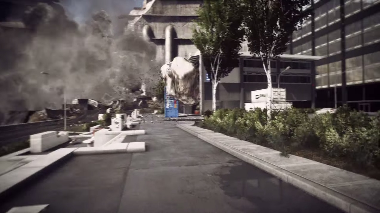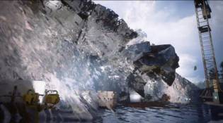 Карта №3- карта с разрушаемой плотиной Раунд начинается в городе, но после взрыва плотины, которая заливает ее большую часть мы получаем разрушенный и затопленный город на котором лучше всего передвигаться на водным мотоцикле. Должно быть весело.