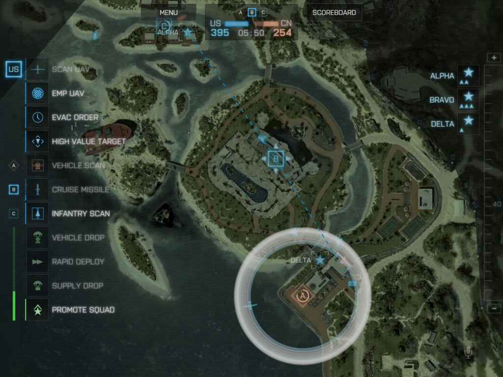 Приложение для использования функции Командира в Battlefield 4 для планшетов является самостоятельным приложением и поддерживает планшеты с ОС Android vs iOS.Приложение позволит запустить режим Командира и присоединится к игровому серверу в любом месте где есть доступ к сети Интернет, где бы вы ни находились. Для доступа к функции Командира вам необходимо достигнуть 10 уровня в BF4. По сообщение разработчиков приложение написано с нуля и позволит комфортно играть даже на мобильных устройствах. Для этого в частности используется технология "Drag & Drop", при помощи который вы сможете управлять отрядами, наносить ракетный огонь и т.д. Для быстрого подключению к игровому серверу существует функция "Быстрая игры". Если игроку необходимо выбрать игровой сервер для игры, приложение необходимо запускать совместно с мобильным Battlelog, выбрать нужный игровой сервер и подключится к нему. Для управления дружественными отрядами используйте функцию Drag & Drop. Для этого необходимо выбрать иконку нужного отряда справа и перетащить ее на цель, тем самым отряду будет отдан приказ. Таким же образом наносится ракетный удар. Значок ракетного удара перетаскивается на нужную цель на карте. По окончанию раунда выводится финальный экран со статистикой игроков, который был разработан специально для мобильного приложения Командир Battlefield 4.