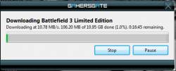 К сожалению о других магазинах, где можно приобрести цифровую копию Battlefield 3 информации нет. Не понятно, будет возможность загрузить Battlefield 3 предварительно у тех, кто оформил предзаказ в других магазинах, о которых не говорится в сообщении. Размер игры составляет 10,95 ГБ, для обладателей плохого интернет канала игру качать придется не один час. На приведенном ниже скриншоте видно, как через клиент закачки GamersGate, пользователю понадобится примерно 16 минут для скачивания игры. С моим каналом дай Бог скачать Battlefield 3 за 16 часов.